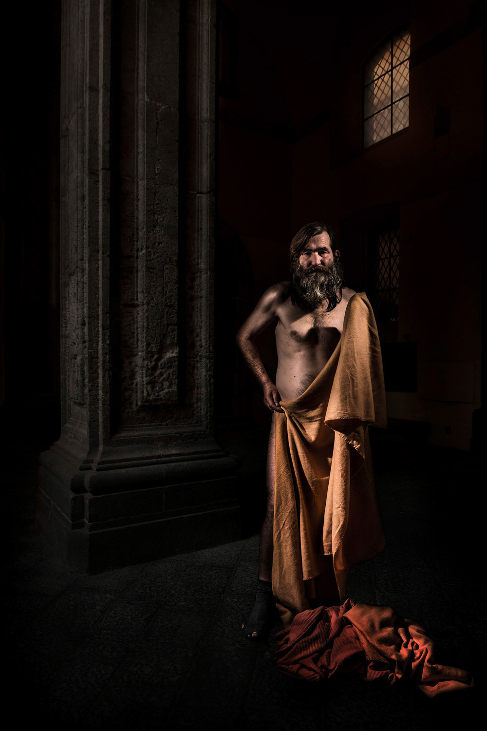 In 1607, during his short stay in Naples, Michelangelo Merisi da Caravaggio painted an astonishing allegory called Seven Works of Mercy. Through a complex dynamic and a wonderful play between light and shadow, this painting uses different narratives to represent the seven corporal works of mercy. Like Caravaggio, I worked with real people. The purpose was to reflect on the contemporary society through the nudity of people with a tough background. This body of work consists in two series and includes both the corporal and spiritual works of mercy. The set is a continuous game of duality through body and spirit, man and woman, light and dark, life and death.